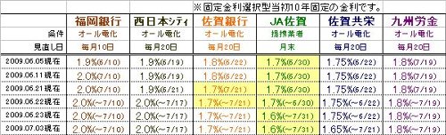2009年7月の住宅ローンの金利が出揃いました。